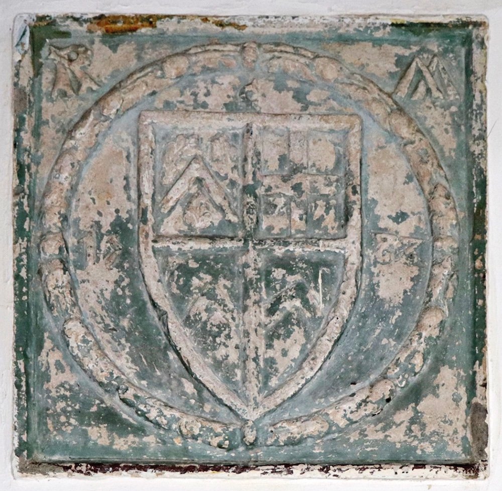 There is an unobtrusive plaque on the wall above the church pulpit, the only really old one in the church. It bears the initials RM and worn and nearly indecipherable dates and a coat of arms, attributed by some to Sir Rice Mansel of Oxwich and Margam; further research reveals this to be unlikely, as one date is 1583, many years after Sir Rice’s death, and what can be discerned of the arms does not include a known Mansel element. It is possible that Emily Talbot, benefactress of the church, installed the plaque knowing or at least thinking that it represented her ancestor.